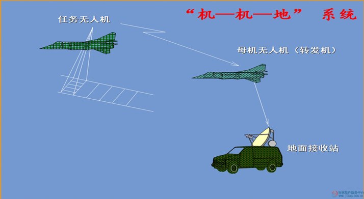 “机—机—地”系统:在遥感系统应用的许多场合,遥感飞机与地面处理站之间相距十分遥远,二者之间的通信和控制必须采用中继方式才能实现,当所获得的数据需要向更远距离传输时(即超出机-地系统的作用范围时),便进入机-机-地模式。该系统由任务无人机、母机无人机(转发机)及地面接收/发站三部分组成,信道流程如下,无人机获取的信号传输给空中母机转发站,经转发站再送到地面接收站,即实现机-机-地传输。要塞——120无人机系统是“机—机—地”系统中的母机(转发机)。