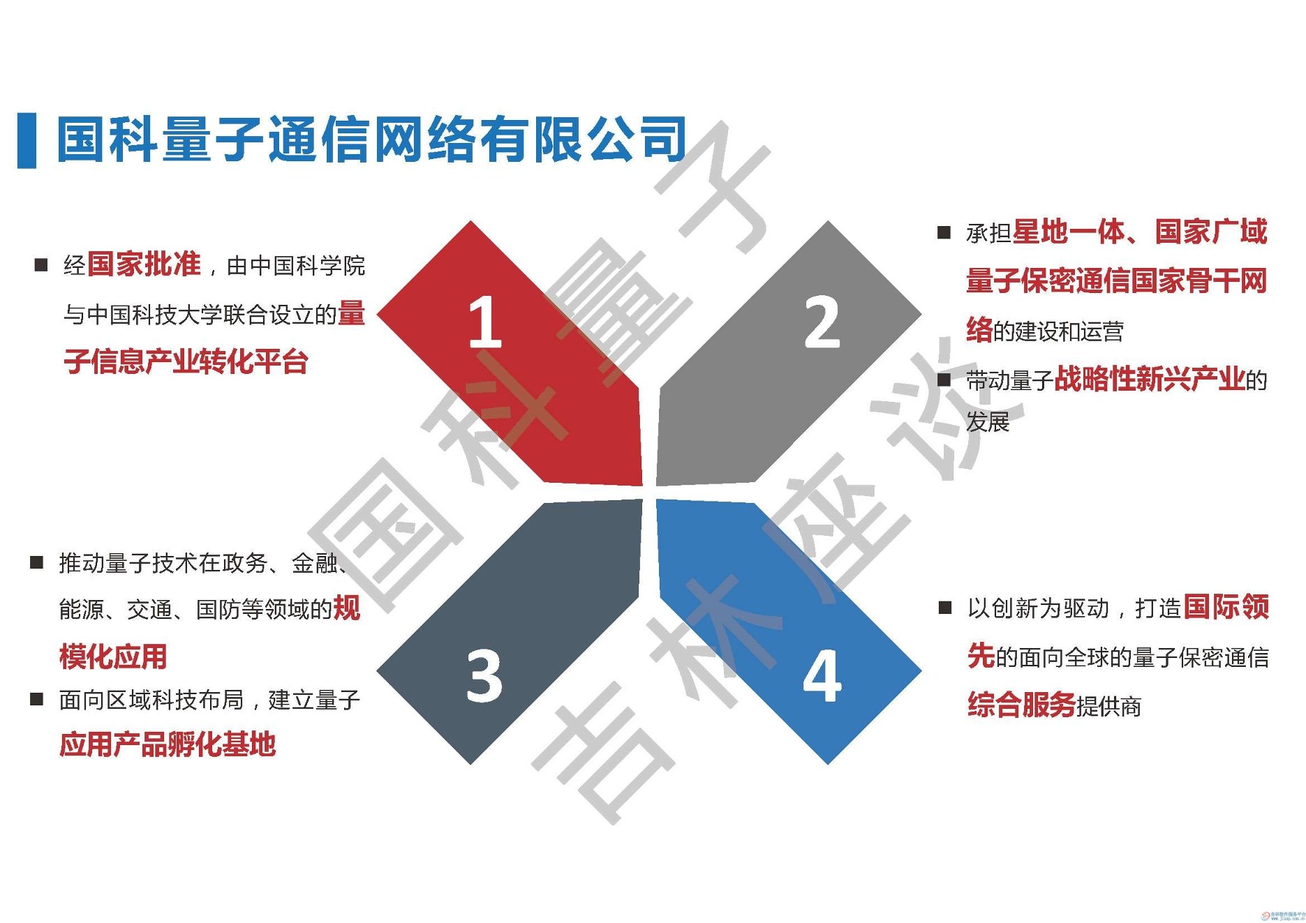 经国家批准,由中国科学院与中国科技大学联合设立的量子信息产业转化平台,承担星地一体、国家广域量子保密通信国家骨干网络的建设和运营,推动量子技术在政务、金融、能源、交通、国防等领域的规模化应用。面向区域科技布局,建立量子应用产品孵化基地,以创新为驱动,打造国际领先的面向全球的量子保密通信综合服务提供商。